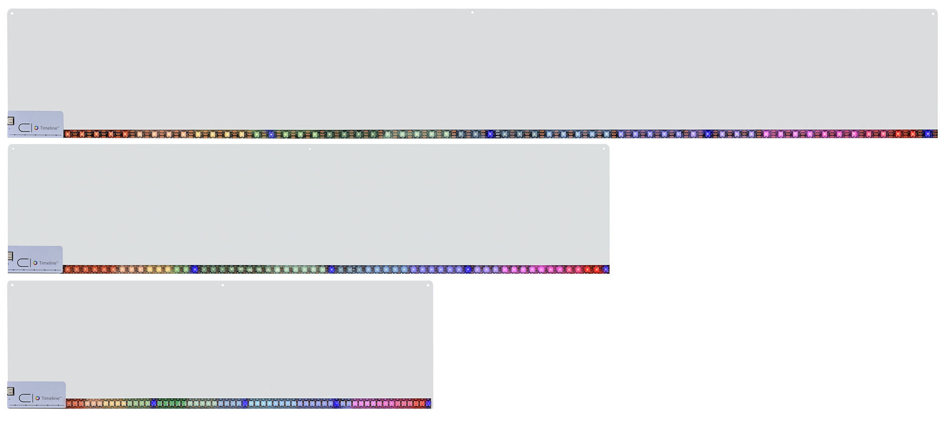- Timeline length: large = 1064mm, medium = 689mm, small = 481mm.